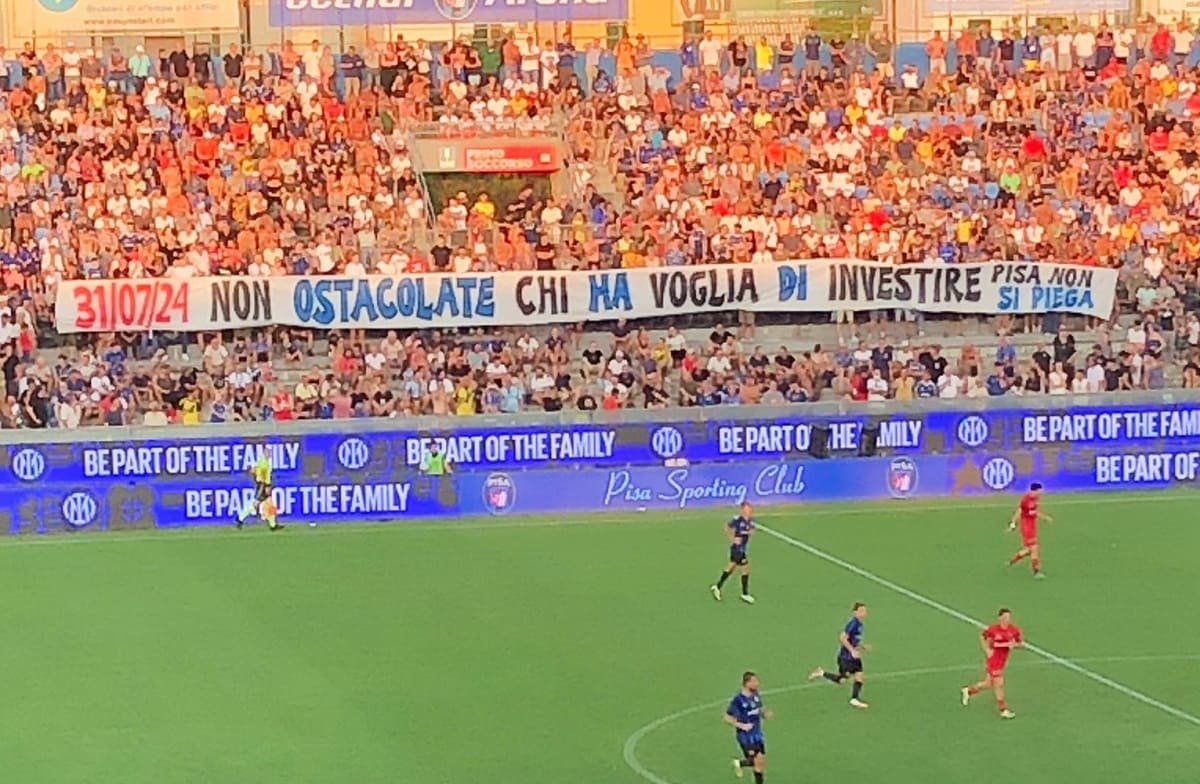 Nel corso dell’amichevole contro l’Inter, i tifosi del Pisa hanno esposto degli striscioni a supporto del patron nerazzurro Alexander Knaster. Nei giorni scorsi, infatti, il numero 1 dei Toscani si era lamentato dei problemi burocratici relativi alla costruzione di nuove strutture (quindi stadio e centro sportivo) per il club, minacciando addirittura l’abbandono.