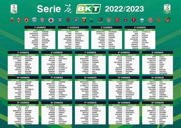 20.44 – Ecco la seconda giornata: Ascoli-SPAL, Bari-Palermo, Cagliari-Cittadella, Cosenza-Modena, Frosinone-Brescia, Genoa-Benevento, Perugia-Parma, Pisa-Como, Sudtirol-Venezia, Ternana-Reggina